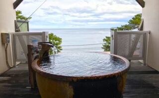 南熱海で絶景温泉を楽しむなら「ニューとみよし」へ。何度でも入れる貸切露天風呂からは青い海を一望。お刺身や釜めしなど、海の幸をふんだんに使った豪華なランチも必見!