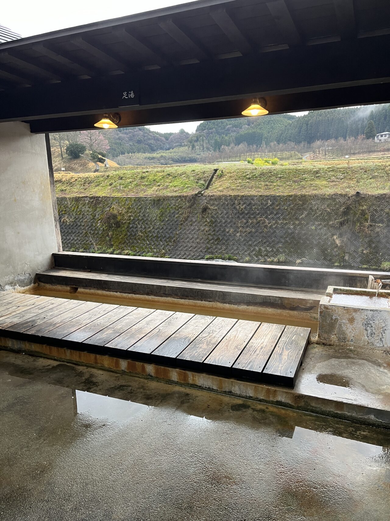 こちらは足湯。黄色い濁り湯の源泉を楽しめます。