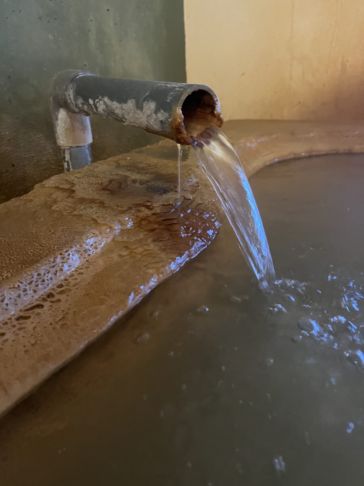 温泉は黄色い濁り湯のものがひとつと、プクプク泡が気持ちいい冷泉が楽しめます。