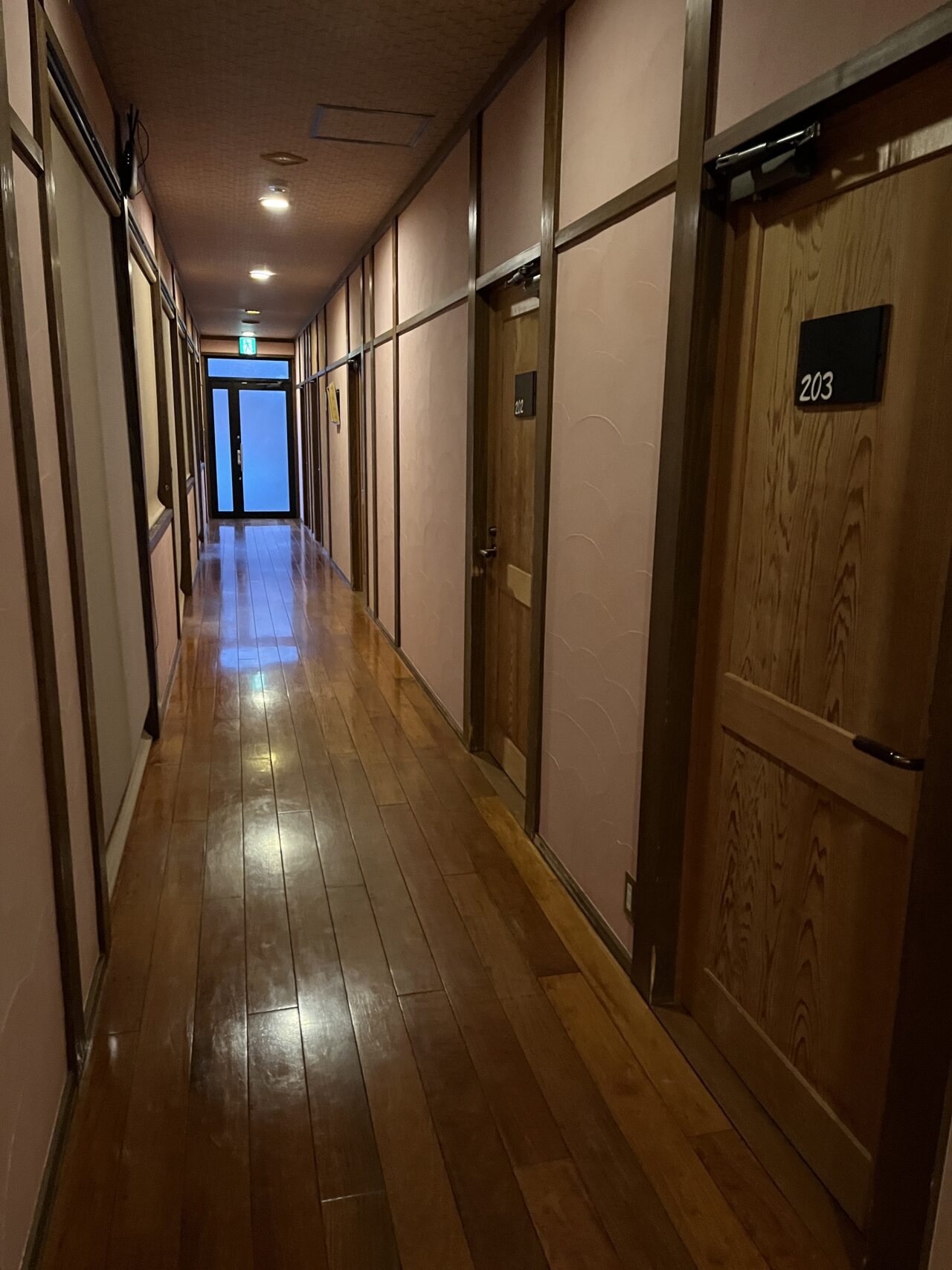 お部屋の廊下がこちら。ここは湯治宿っぽい雰囲気でした。