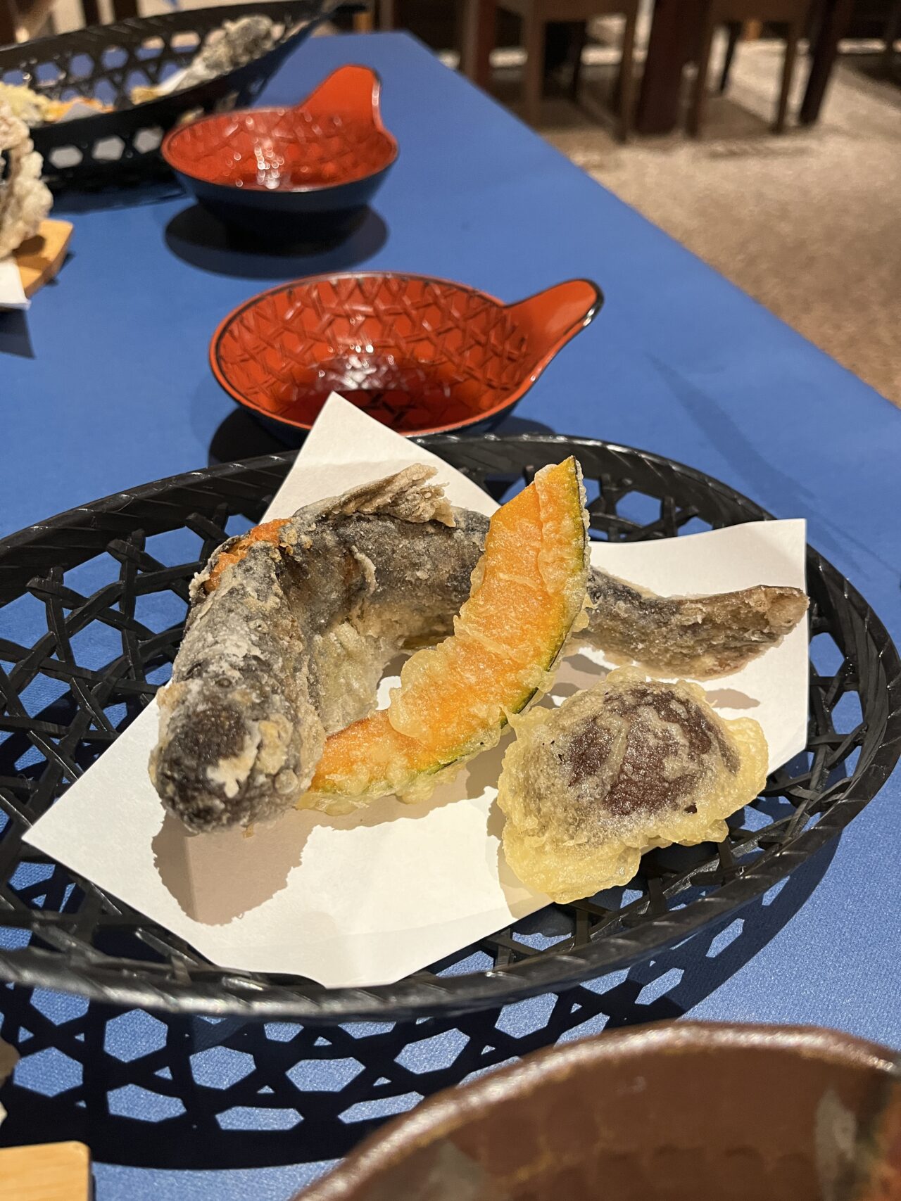 こちらもまたエノハの唐揚げ。野菜も揚げてましたが、比較的ヘルシー。