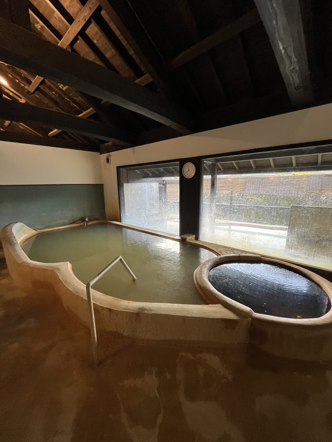 こちらも手前の冷泉と奥の温泉の2つの浴槽が楽しめます。