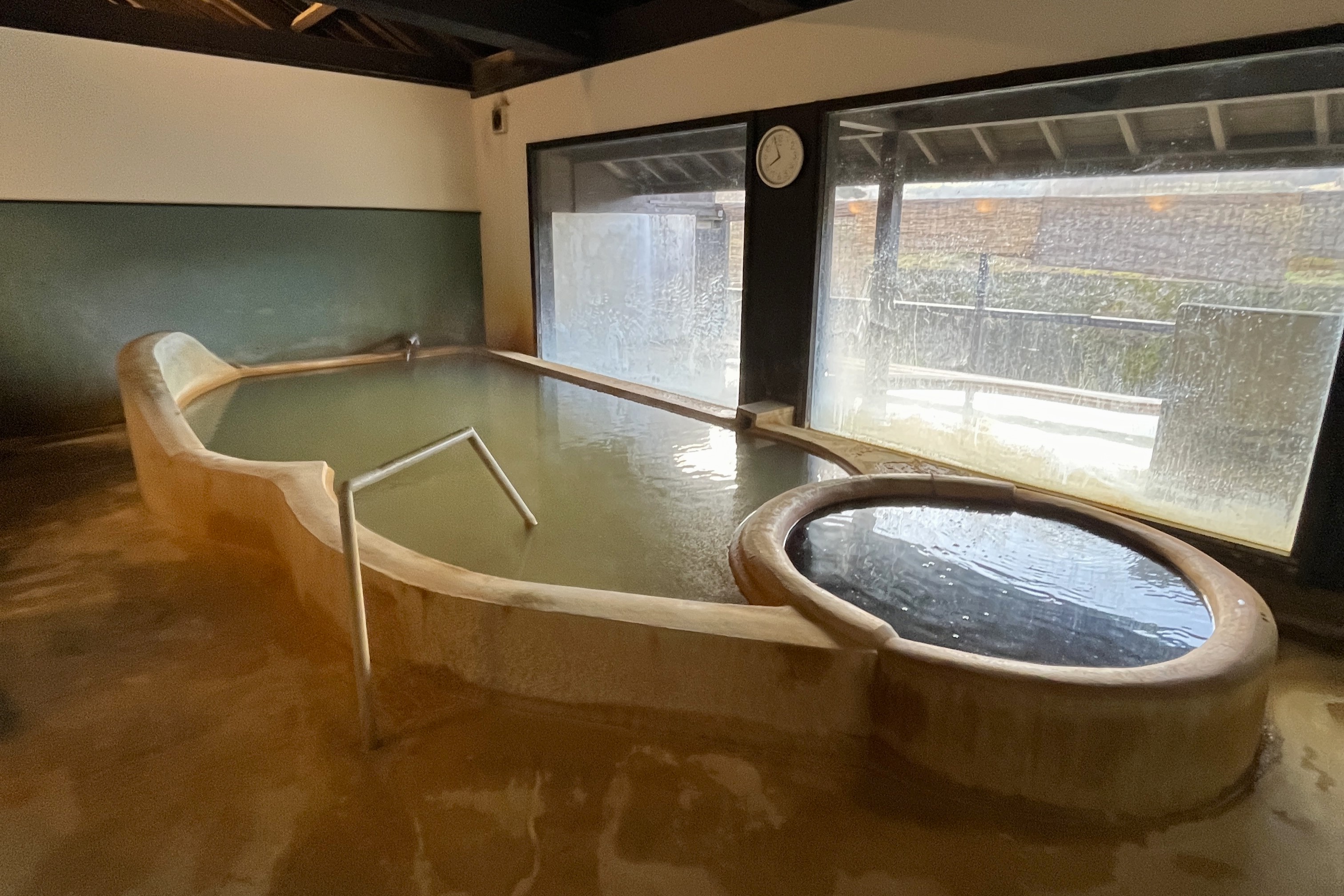 こちらも手前の冷泉と奥の温泉の2つの浴槽が楽しめます。