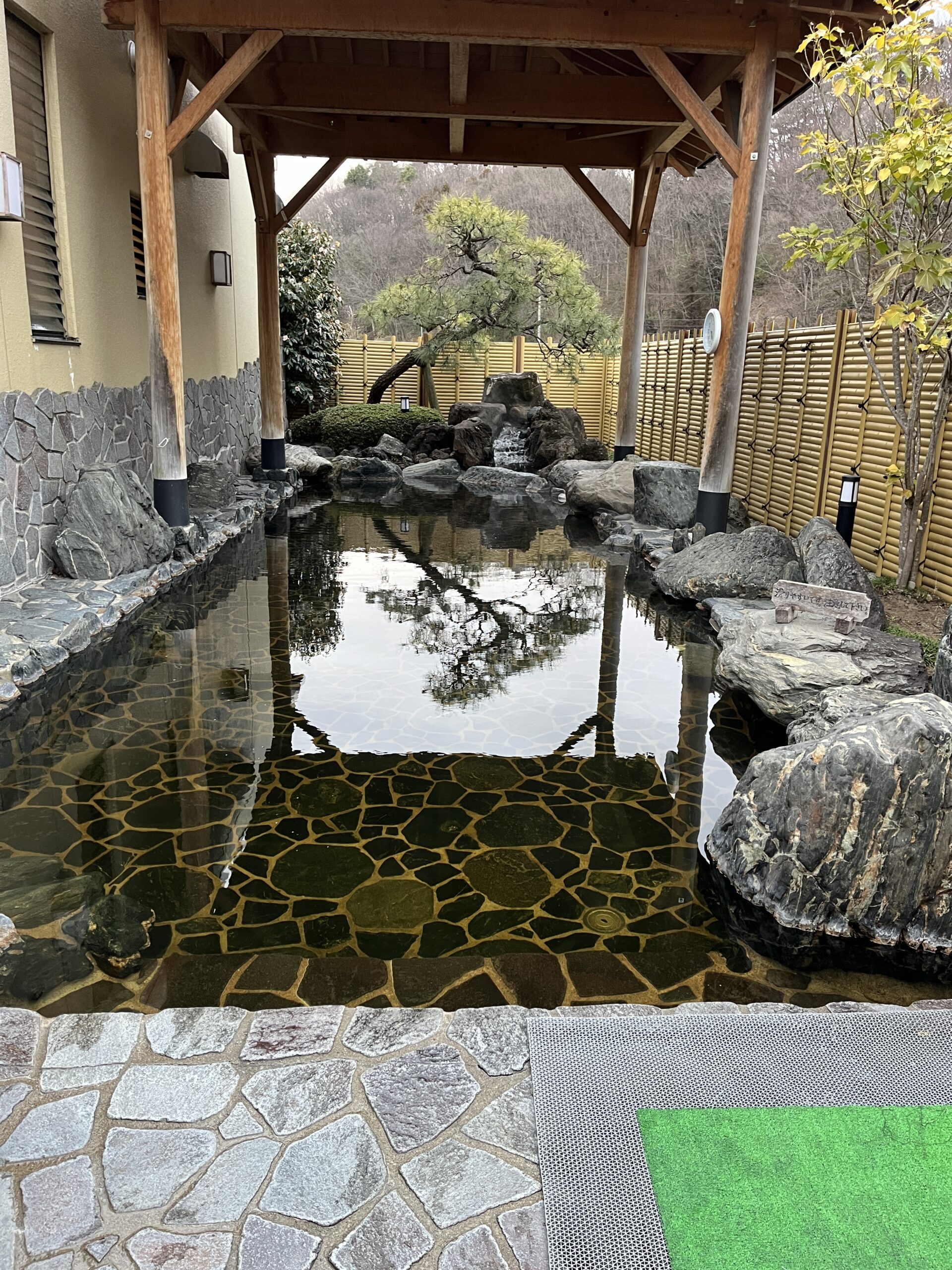 こちらが大きい露天風呂。見ため通りかなりのサイズです。