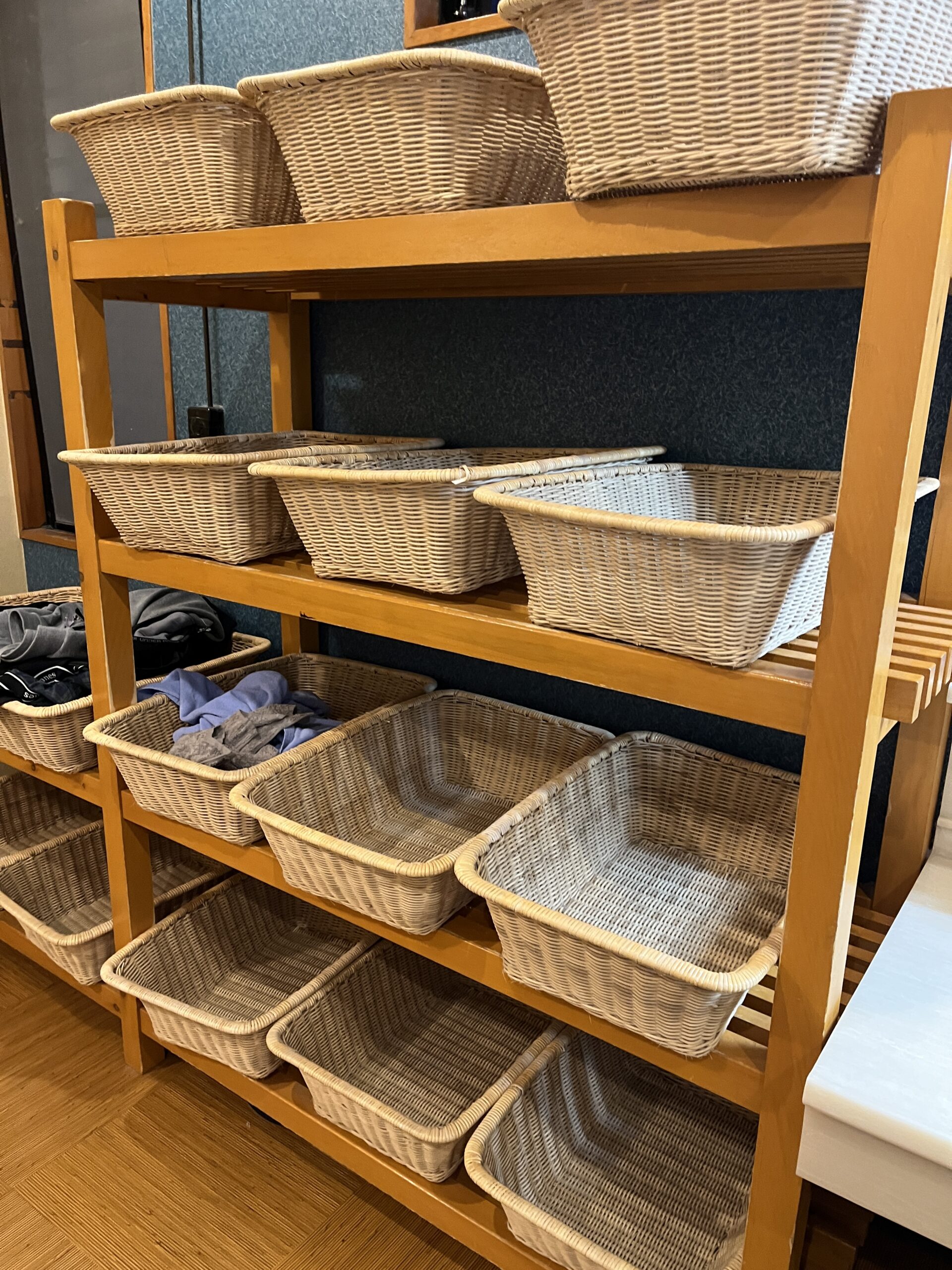 男湯の脱衣所がこちら。かごが所狭しと並んでおりました。