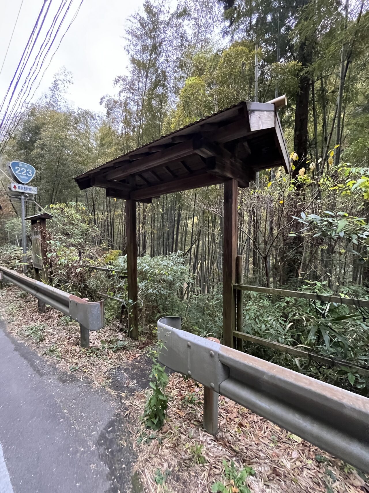 看板の奥に屋根の付いた柱が現れました。ここが入り口です。