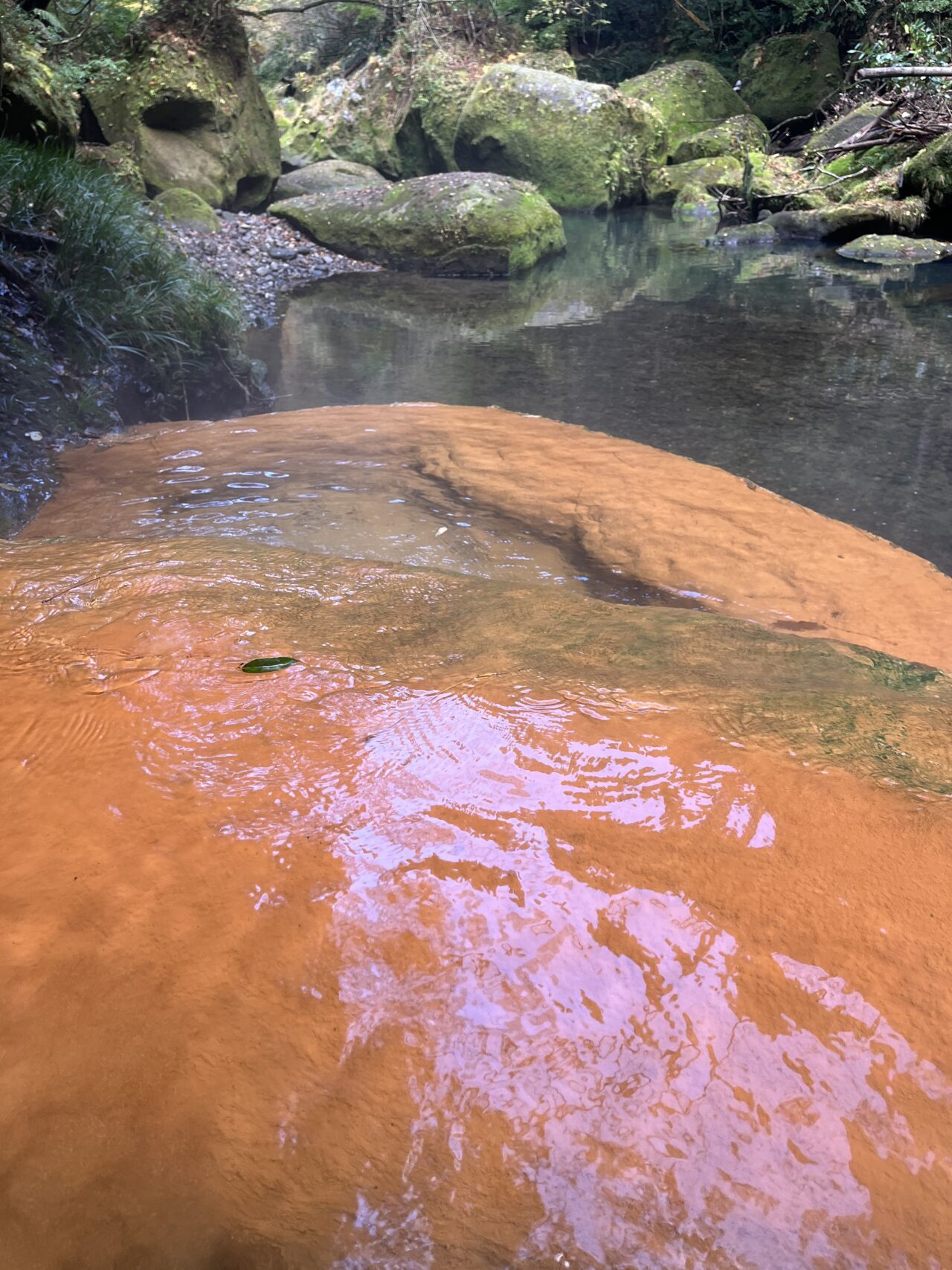 浴槽の内側も自然にできたくぼみなのでしょうかね。触ると茶色っぽい成分がついてました。