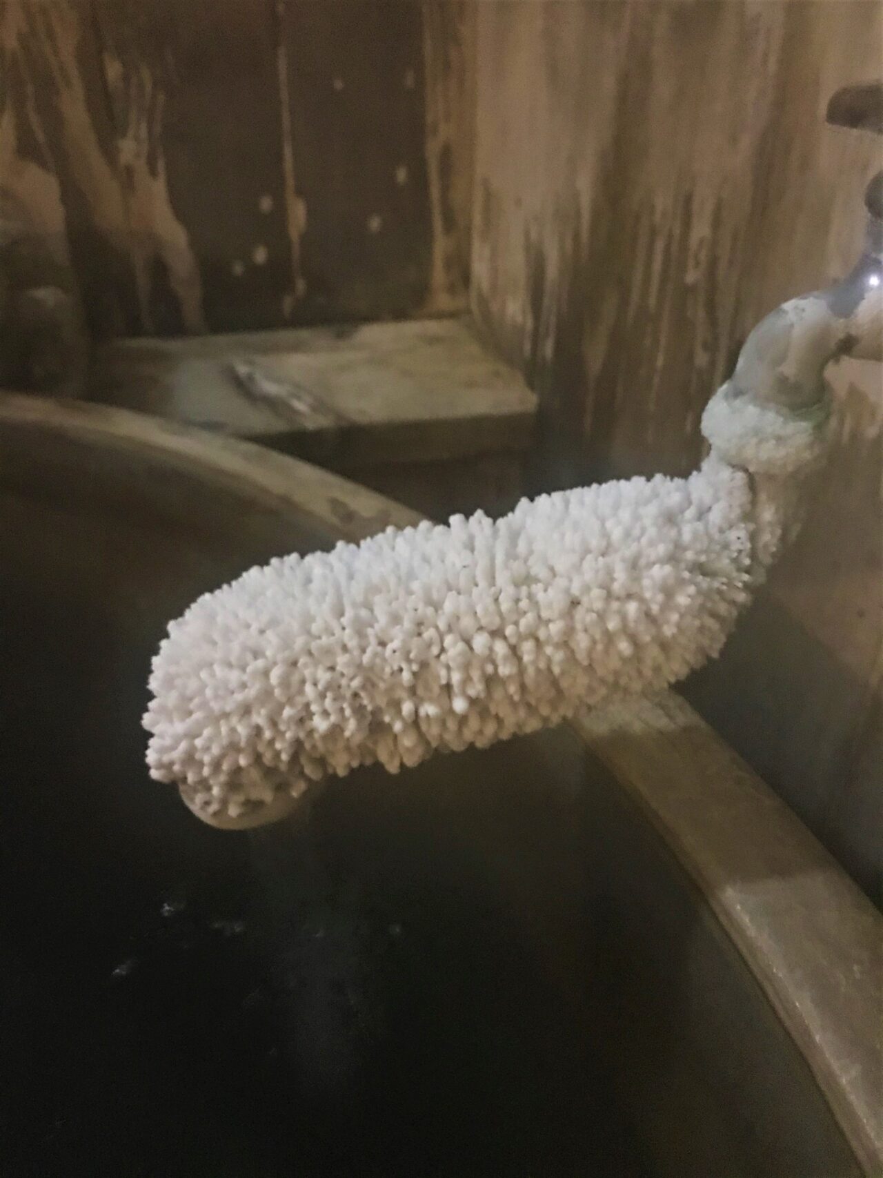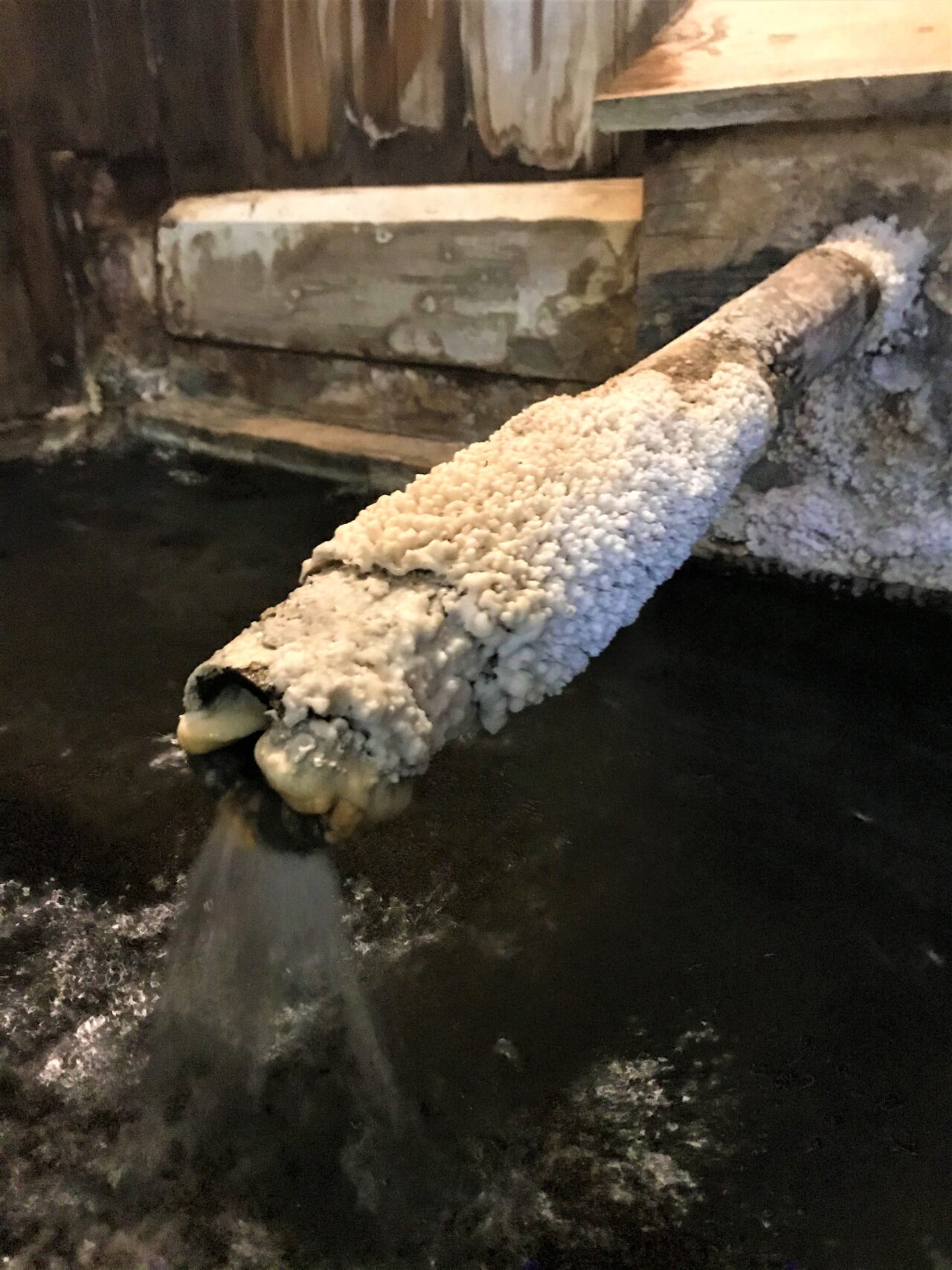 こちらの湯口にも「石灰華」が。