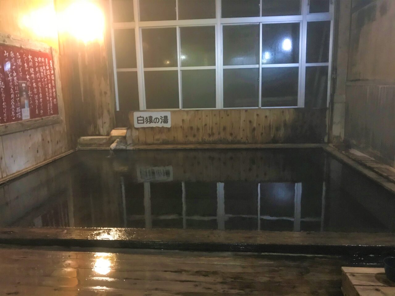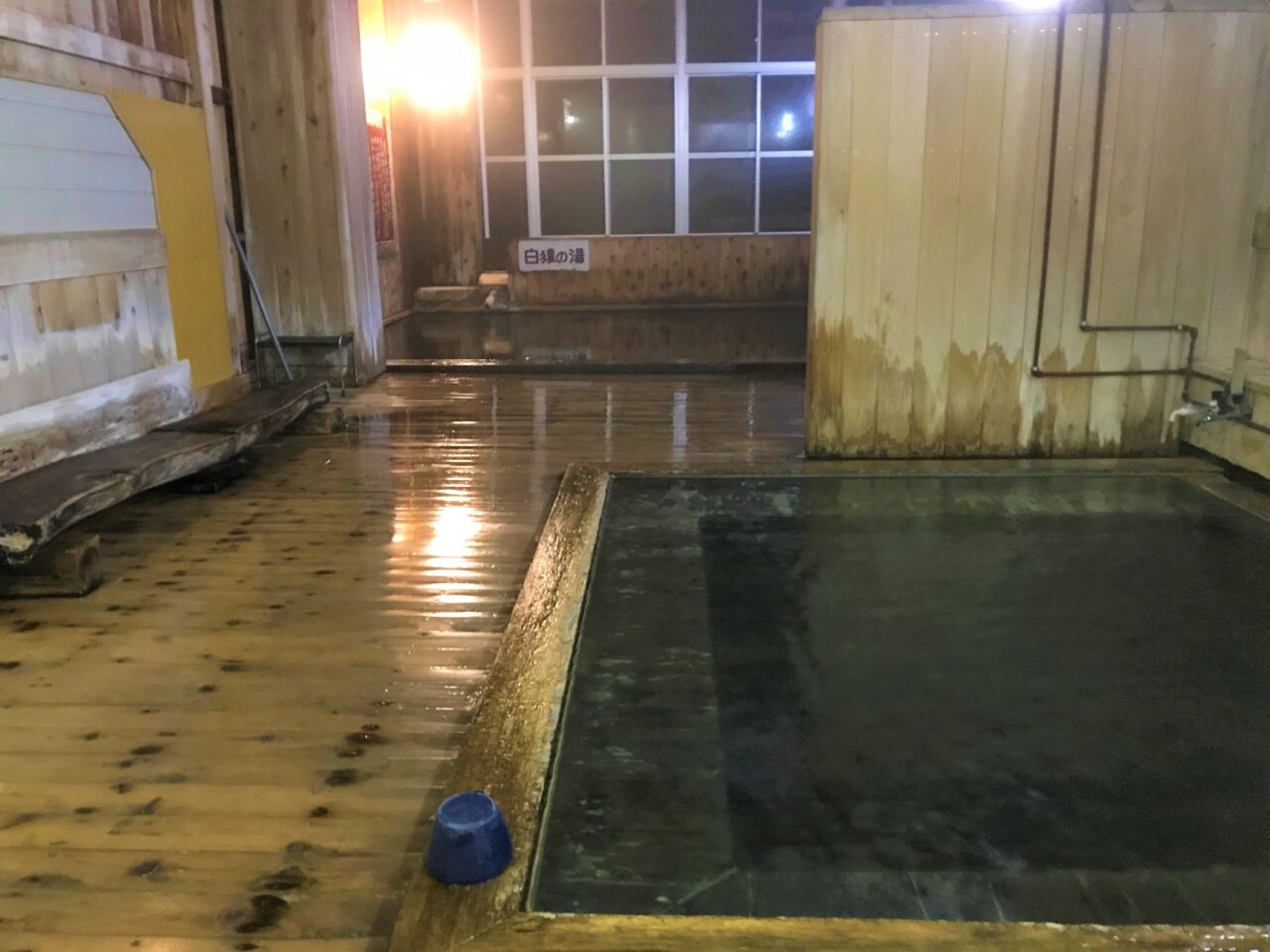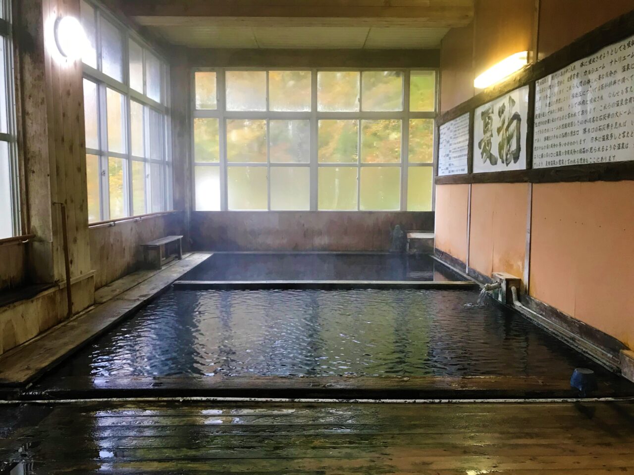 - 大きな木造の浴室が秘湯感たっぷり