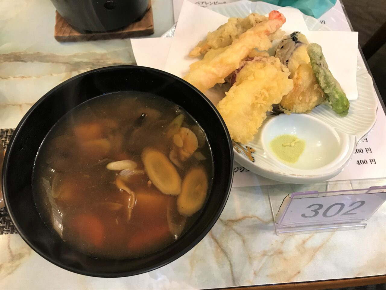 ボリュームたっぷりの天ぷらも抹茶塩で美味しく。