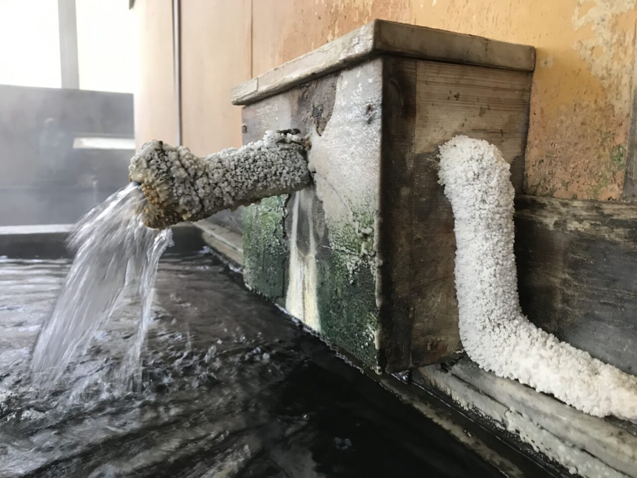 湯口の石灰華がエグい「内湯①」