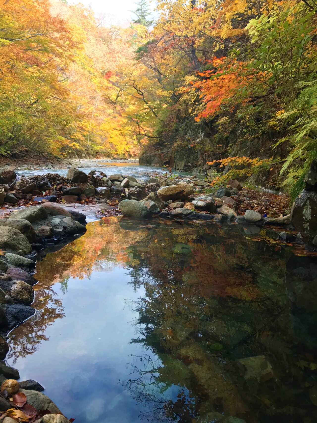 水面に紅葉が映りこんで最高の景色です。