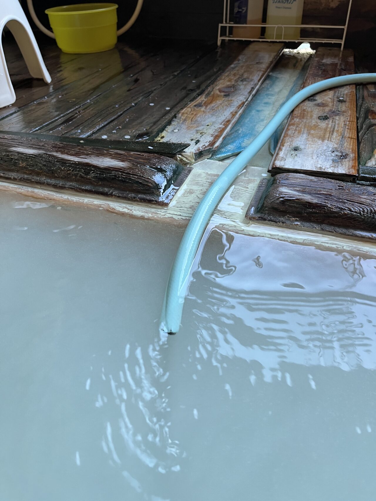 ホースの水を受けながら気持ちよく入浴できました。