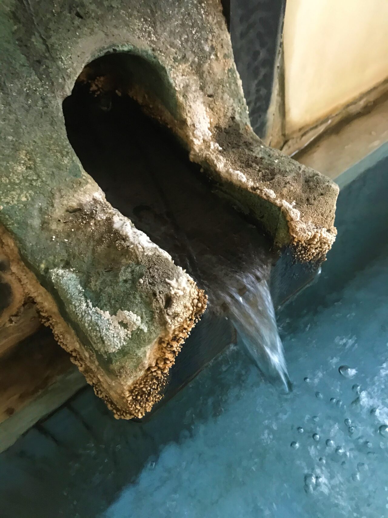 湯口です。周りには析出物も見られます。