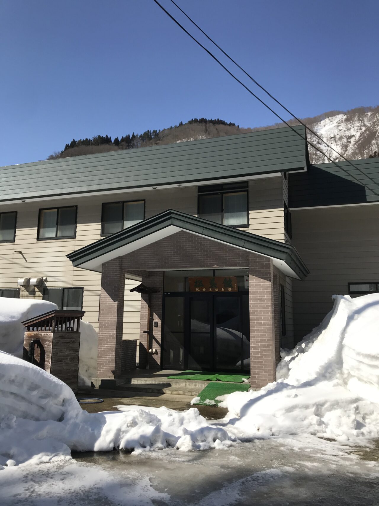 松葉館は山形県最上町の、小国川沿いの温泉街にたたずむ宿です。