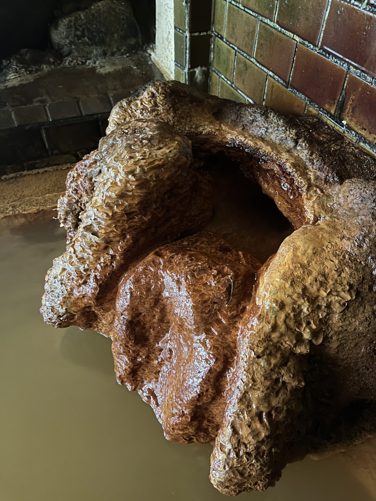 そして湯口もすんごい!濃ゆい成分が付着してドームのような形状に。自然の芸術です。