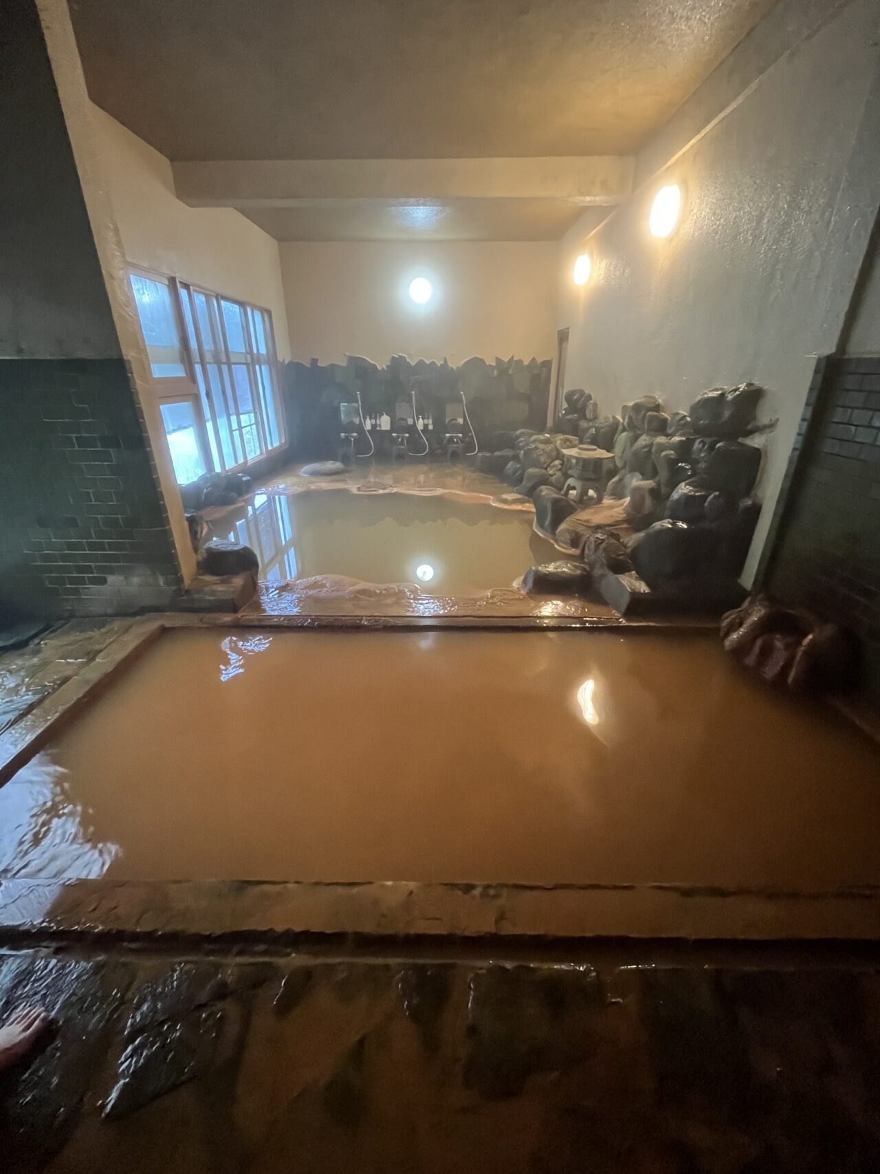 • 男湯は源泉と加温された浴槽2つ
