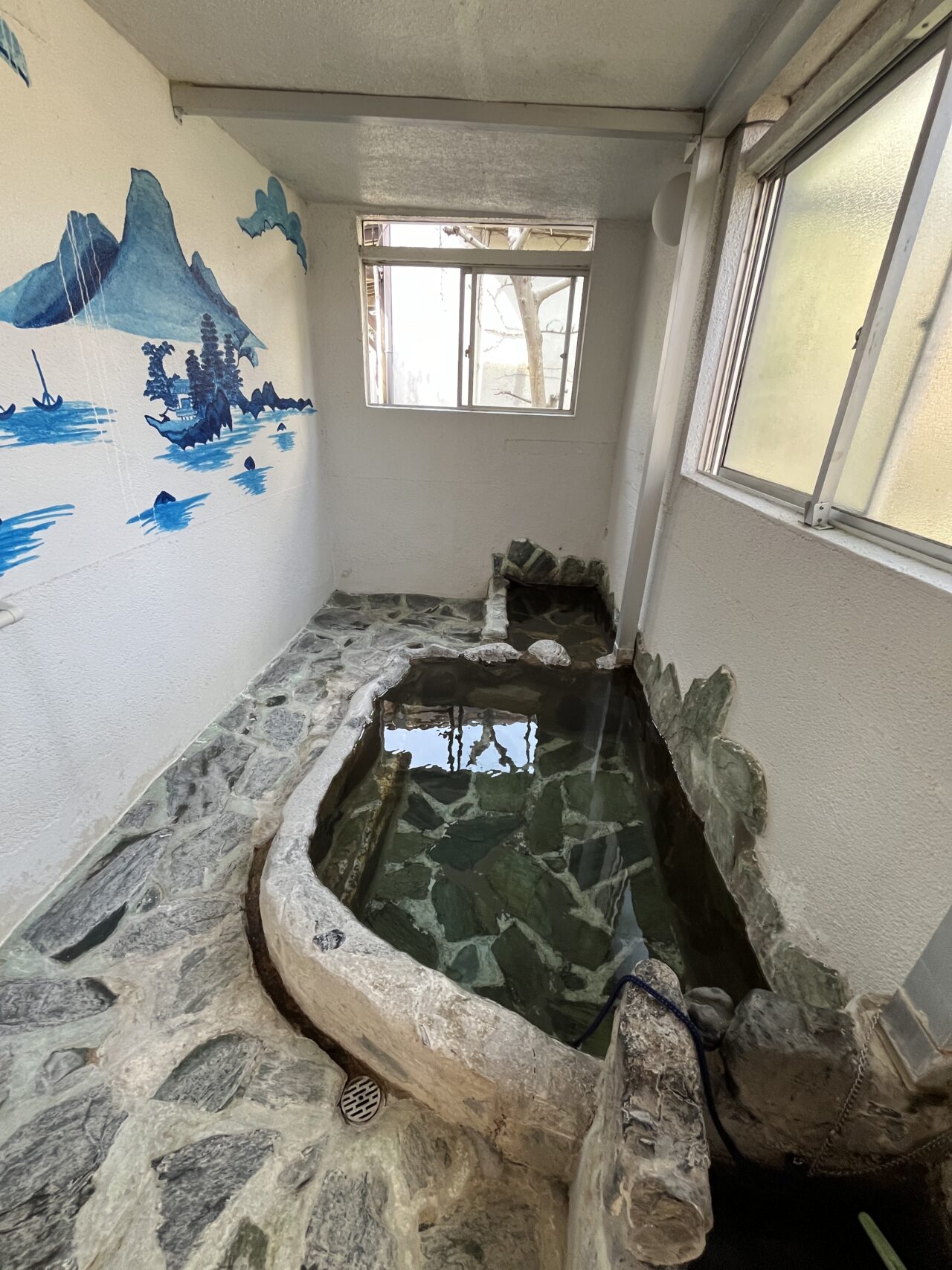 おそらく奥の小さい浴槽から源泉が流れてくる仕組みだと思います。