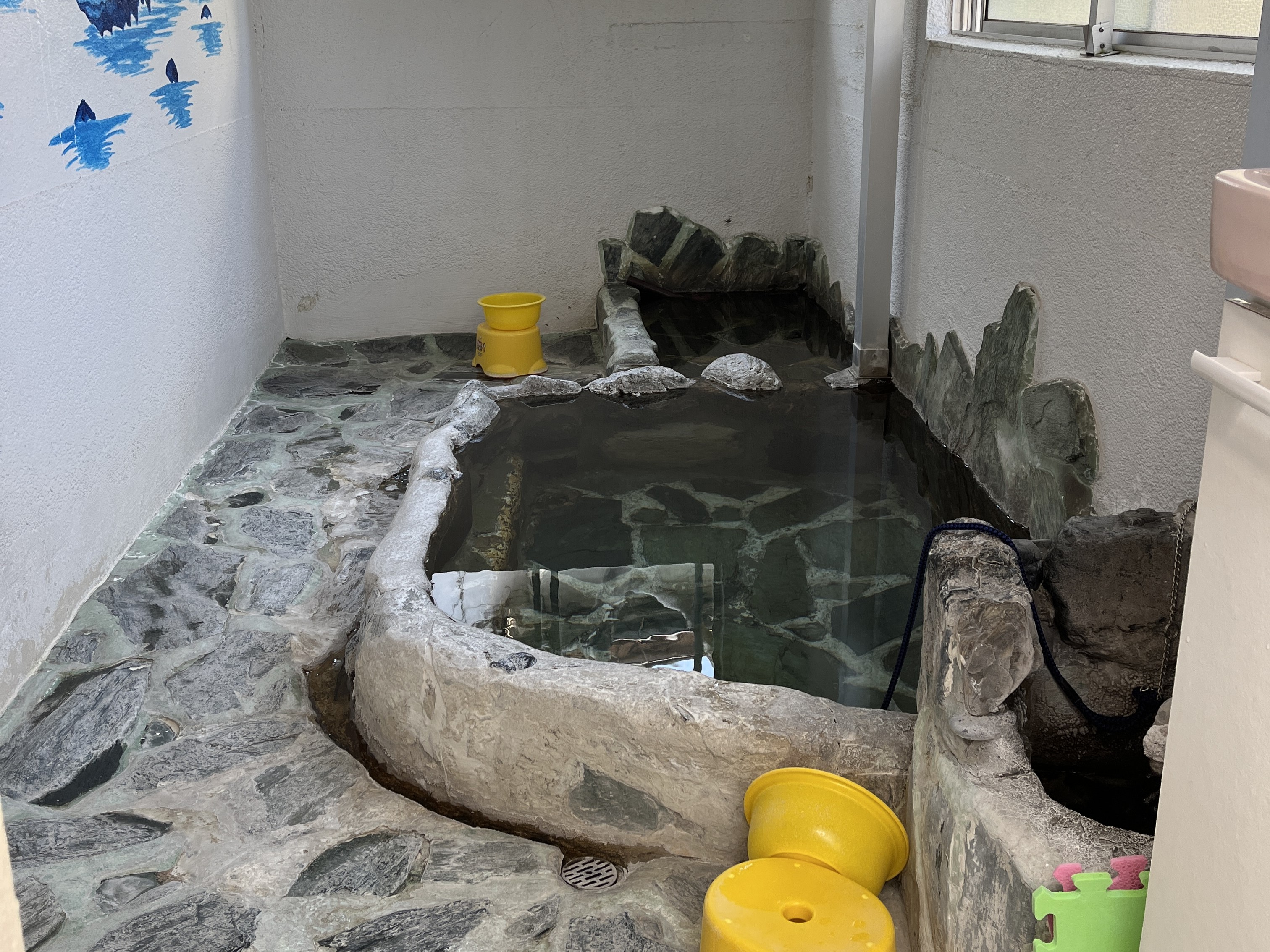 おそらく奥の小さい浴槽から源泉が流れてくる仕組みだと思います。