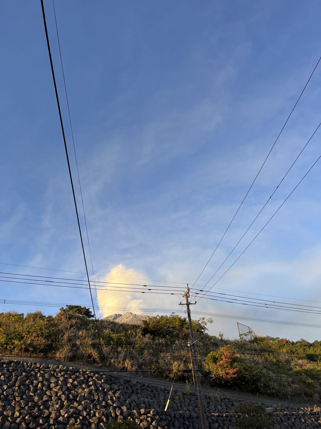 そして上を見ると桜島の頂上からは白い噴煙が!