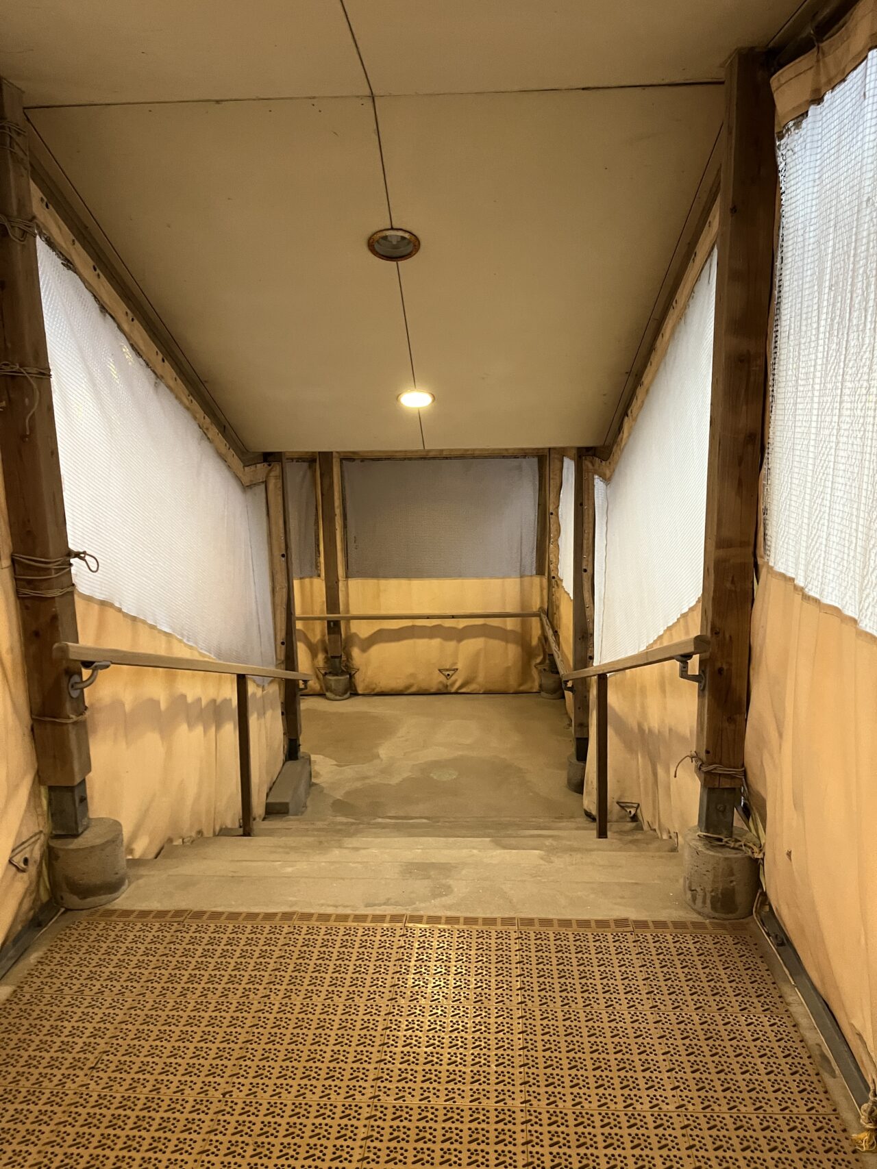 温泉へは地下へと続く道を行きます。