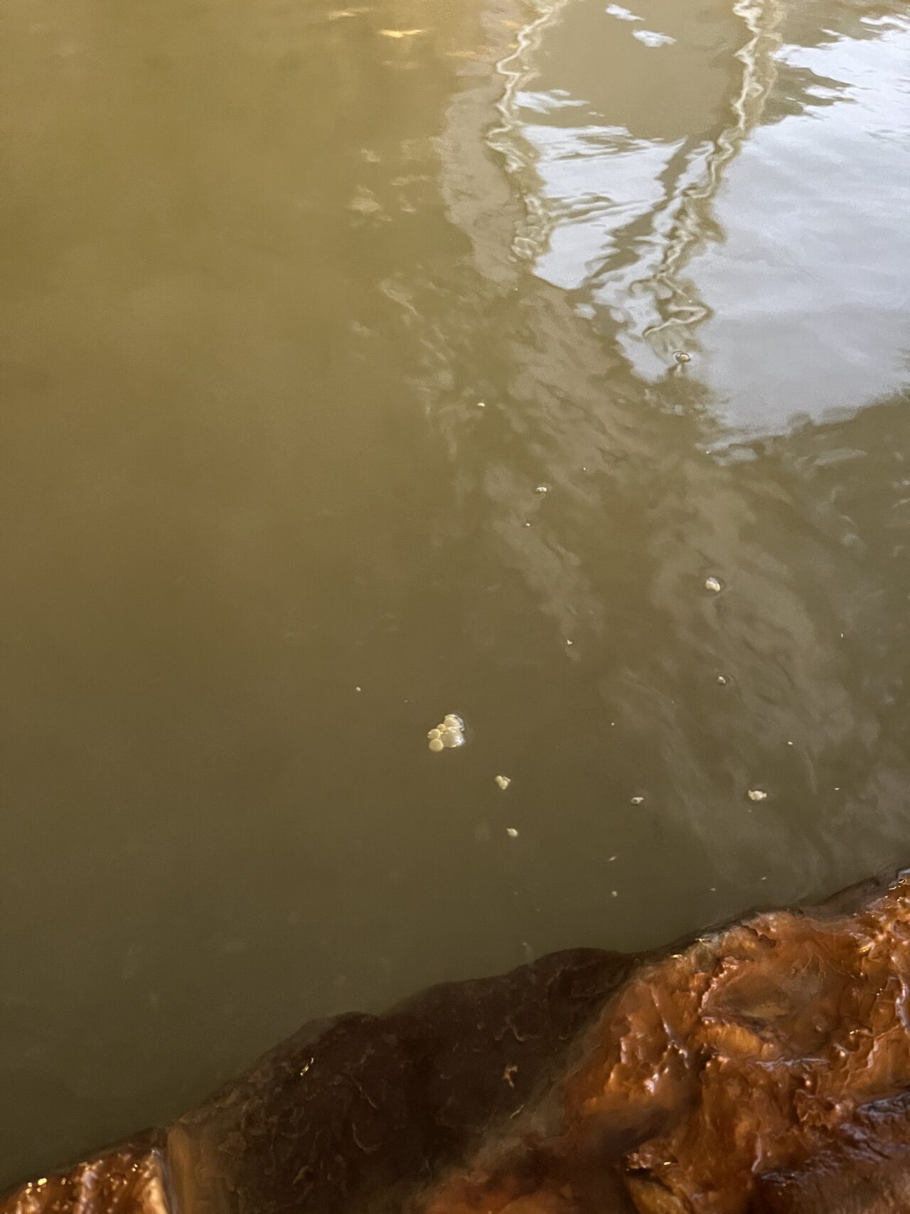 「温泉」茶褐色のにごり湯