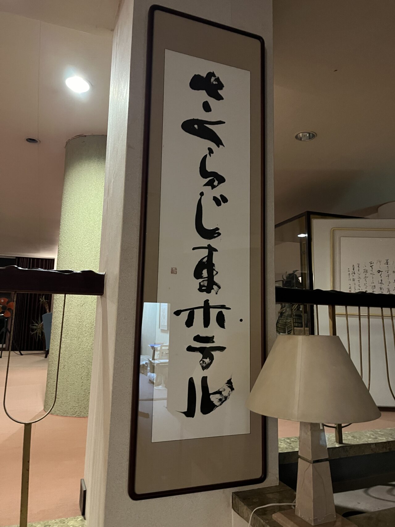 独特な文字の館内に飾られている書。有名な方が書いたのでしょうかね。
