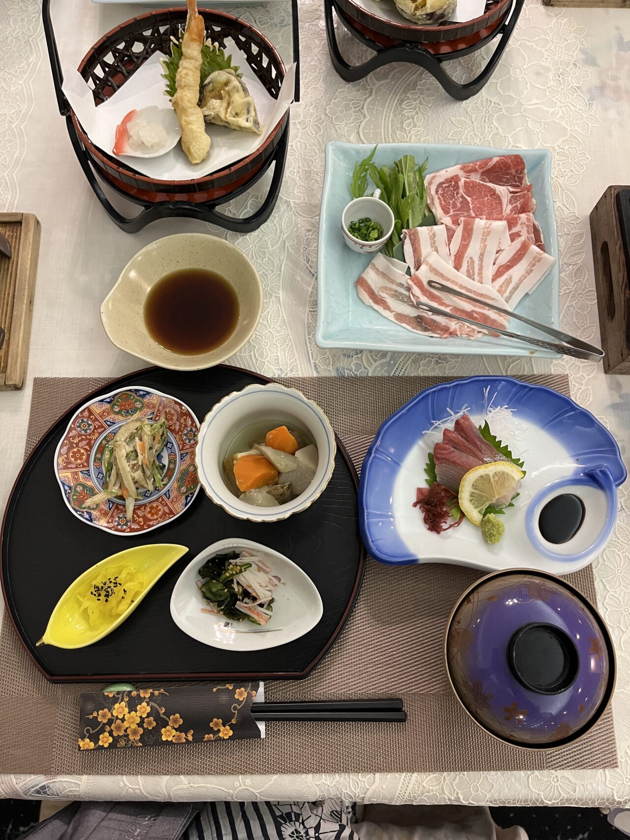 こちらです。刺身、天ぷら、あえ物などなどとてもシンプル。