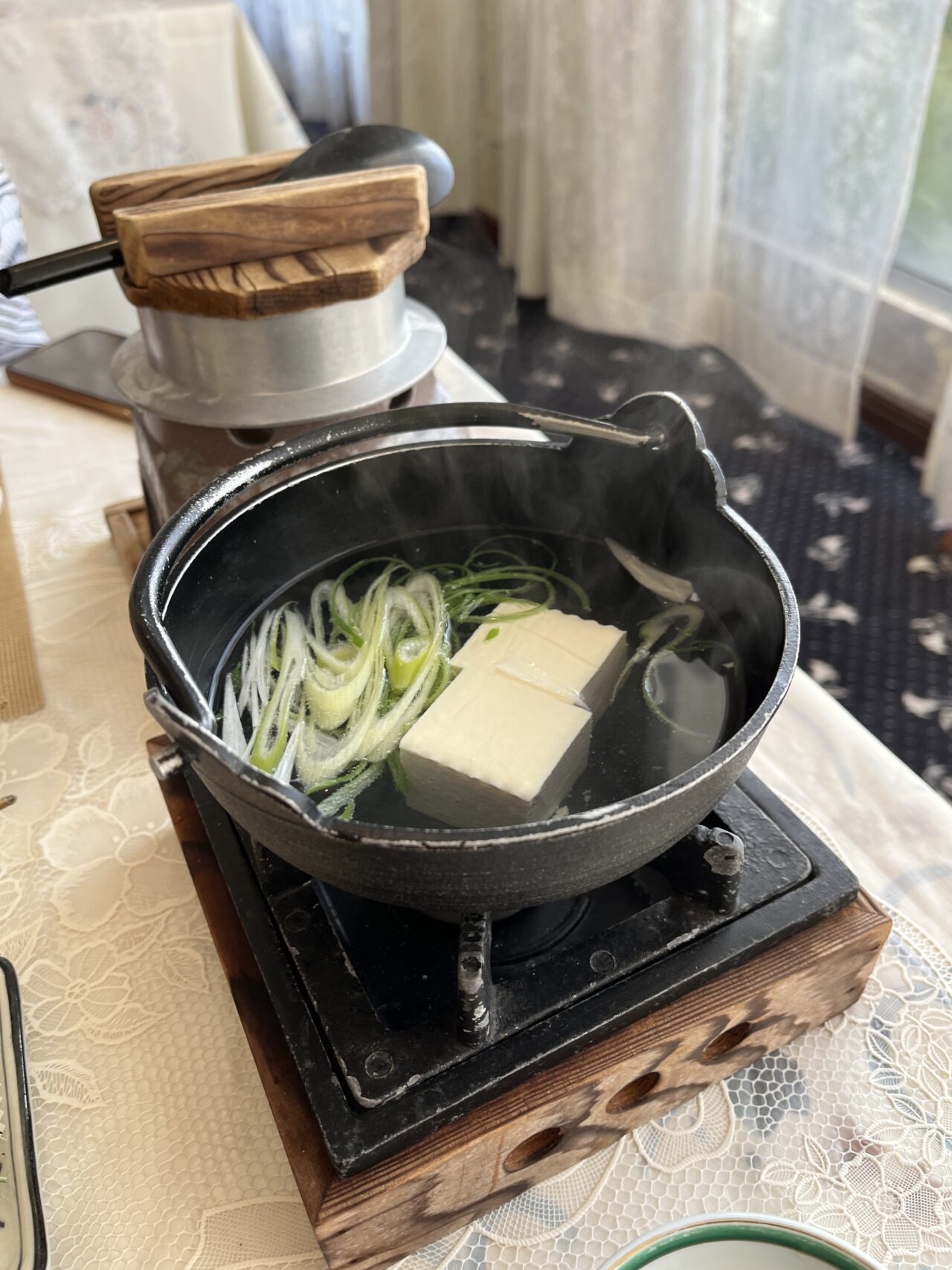 朝からホカホカの湯豆腐で体も温まります。