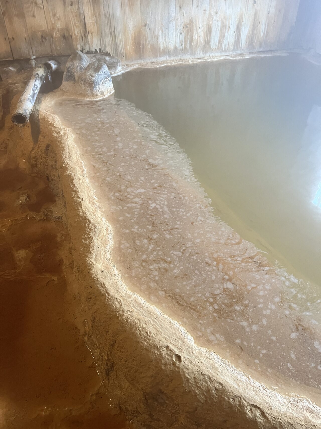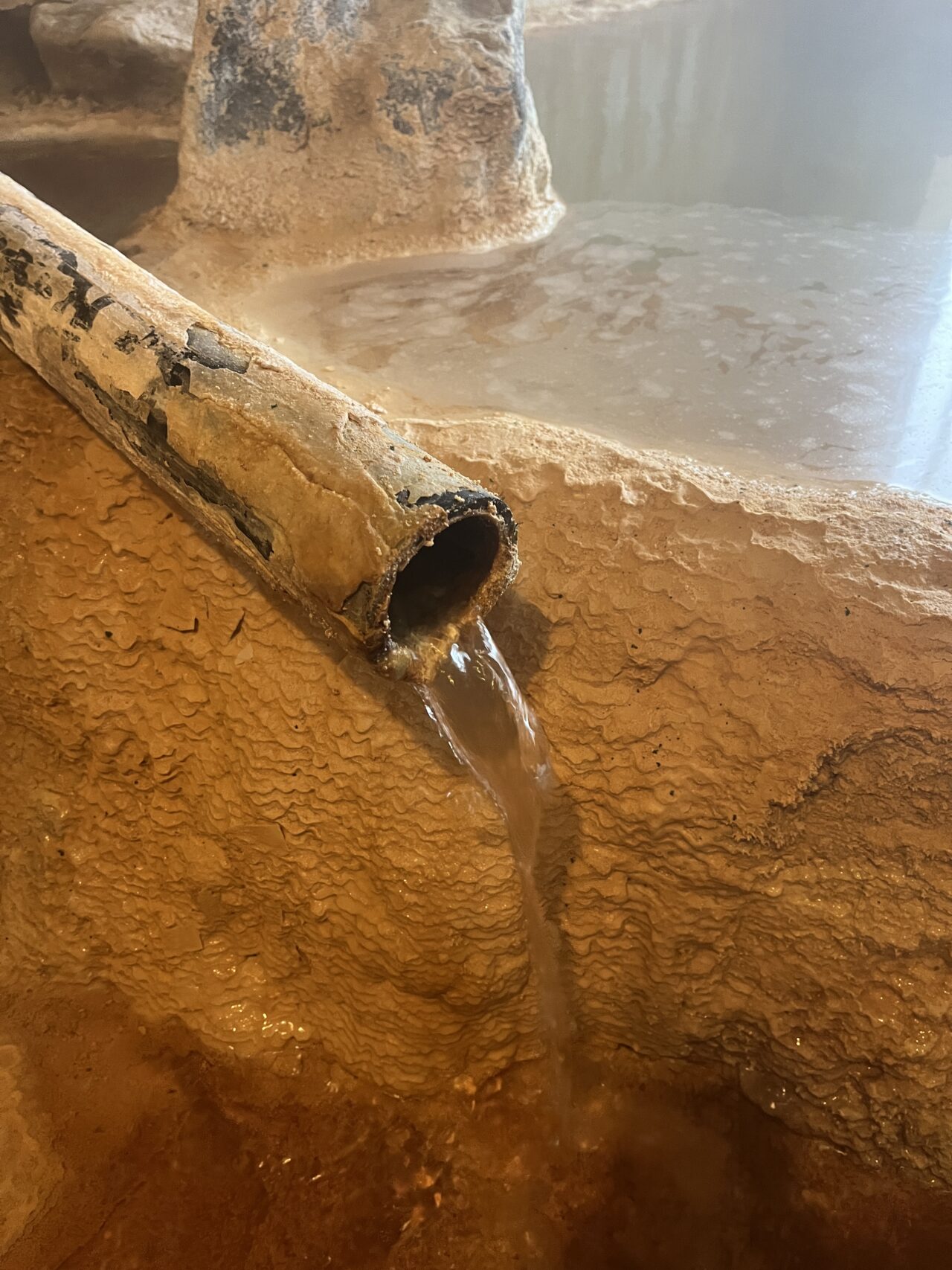 これは温泉成分が非常に濃い証拠。長湯温泉全体が炭酸泉で名を馳せていますが、郷の湯旅館の源泉もそのポテンシャルを十分に感じさせてくれます。