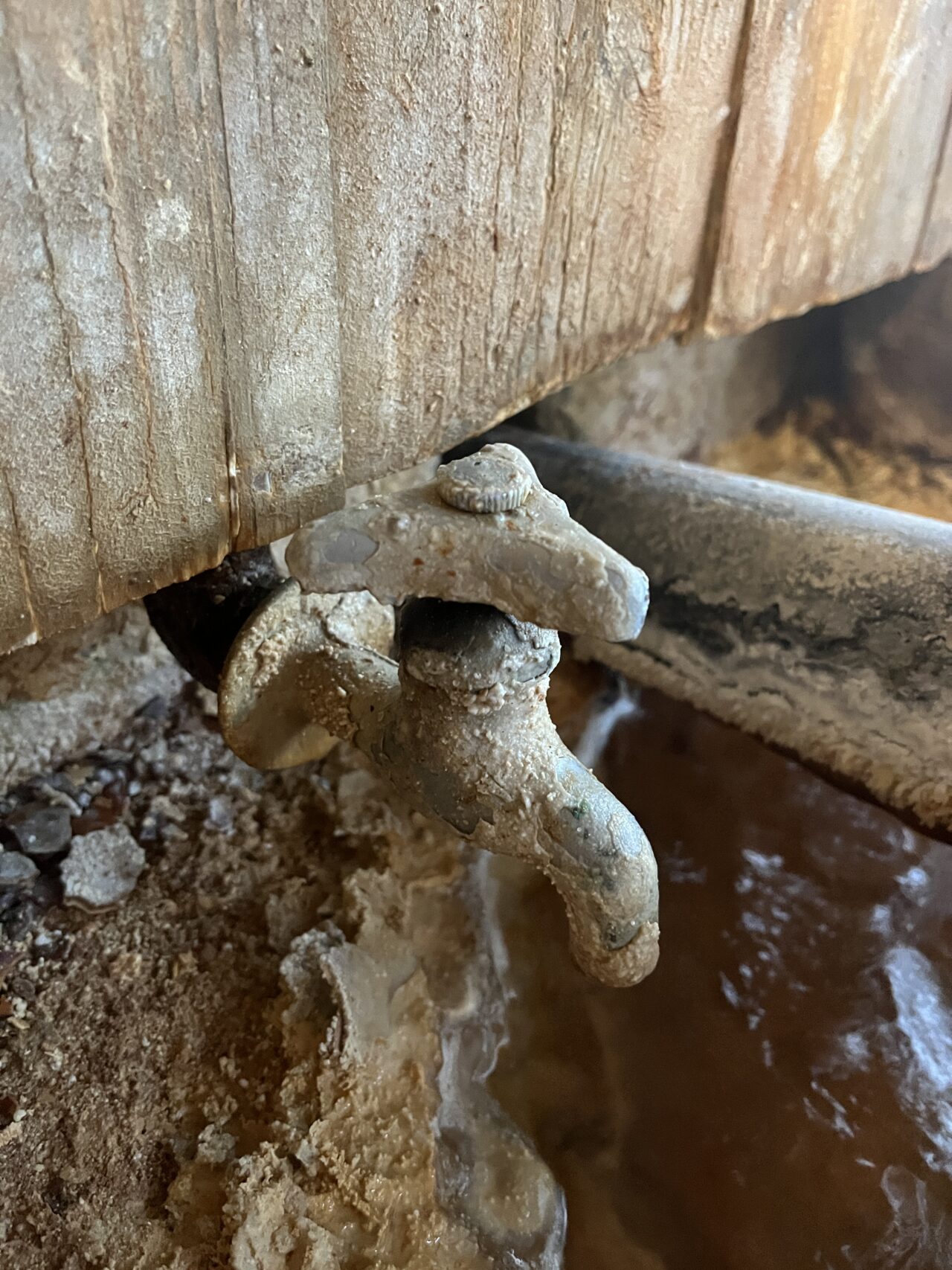 そして蛇口も析出物でコーティングされてます、なんと濃い成分なのか・・・。