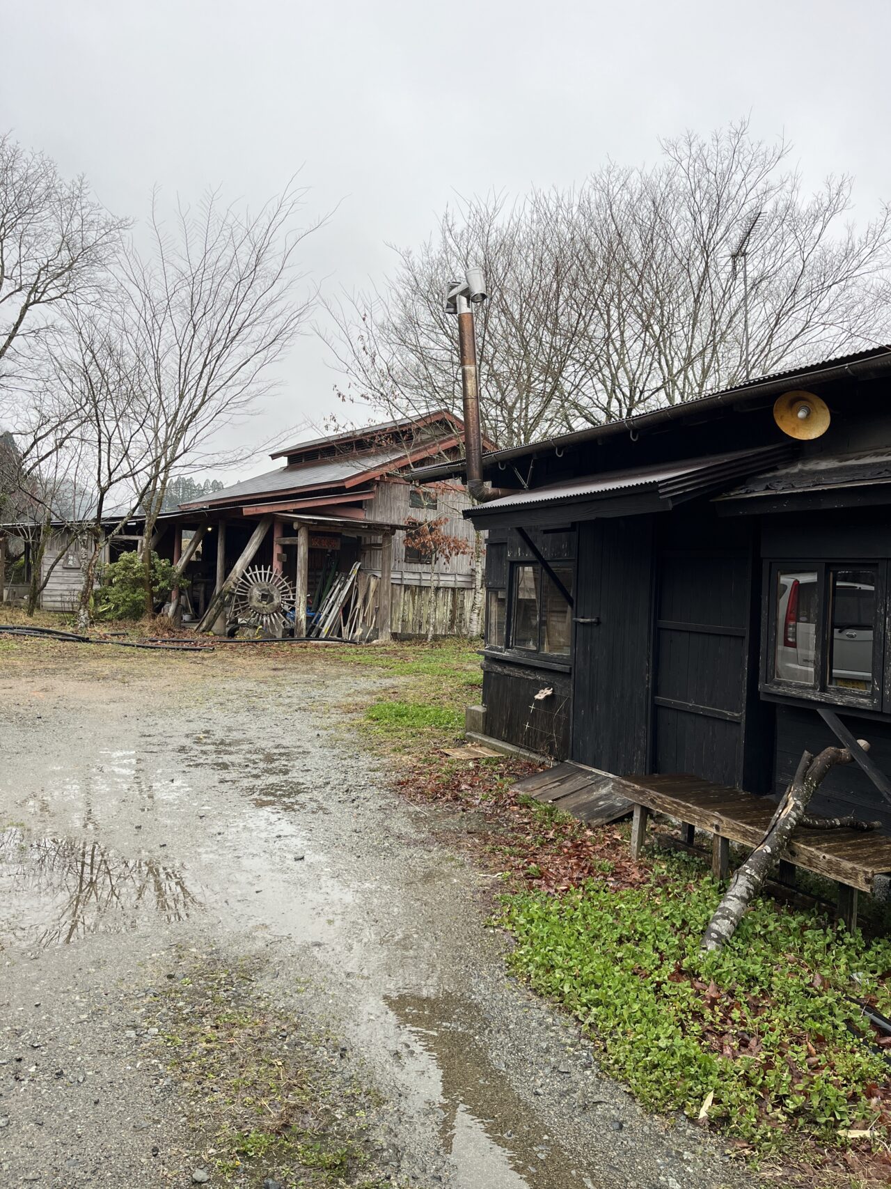 道路沿いの砂利駐車場に止めて奥までいくと、宿が見えてきます。