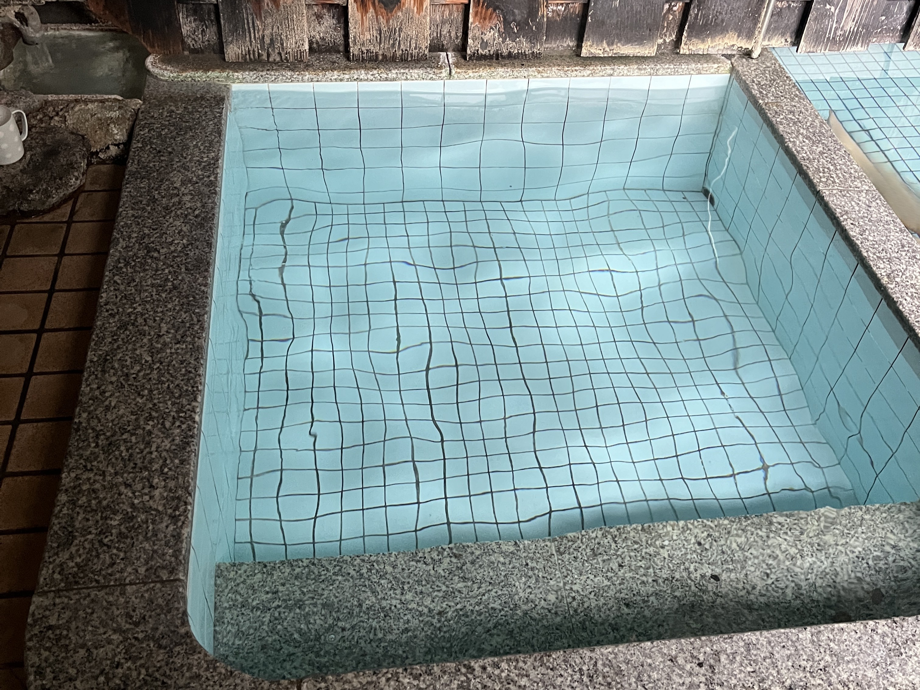 2つ浴槽があり、こちらは源泉が直接流れます。39℃ほどのぬる湯で素晴らしい温度です。