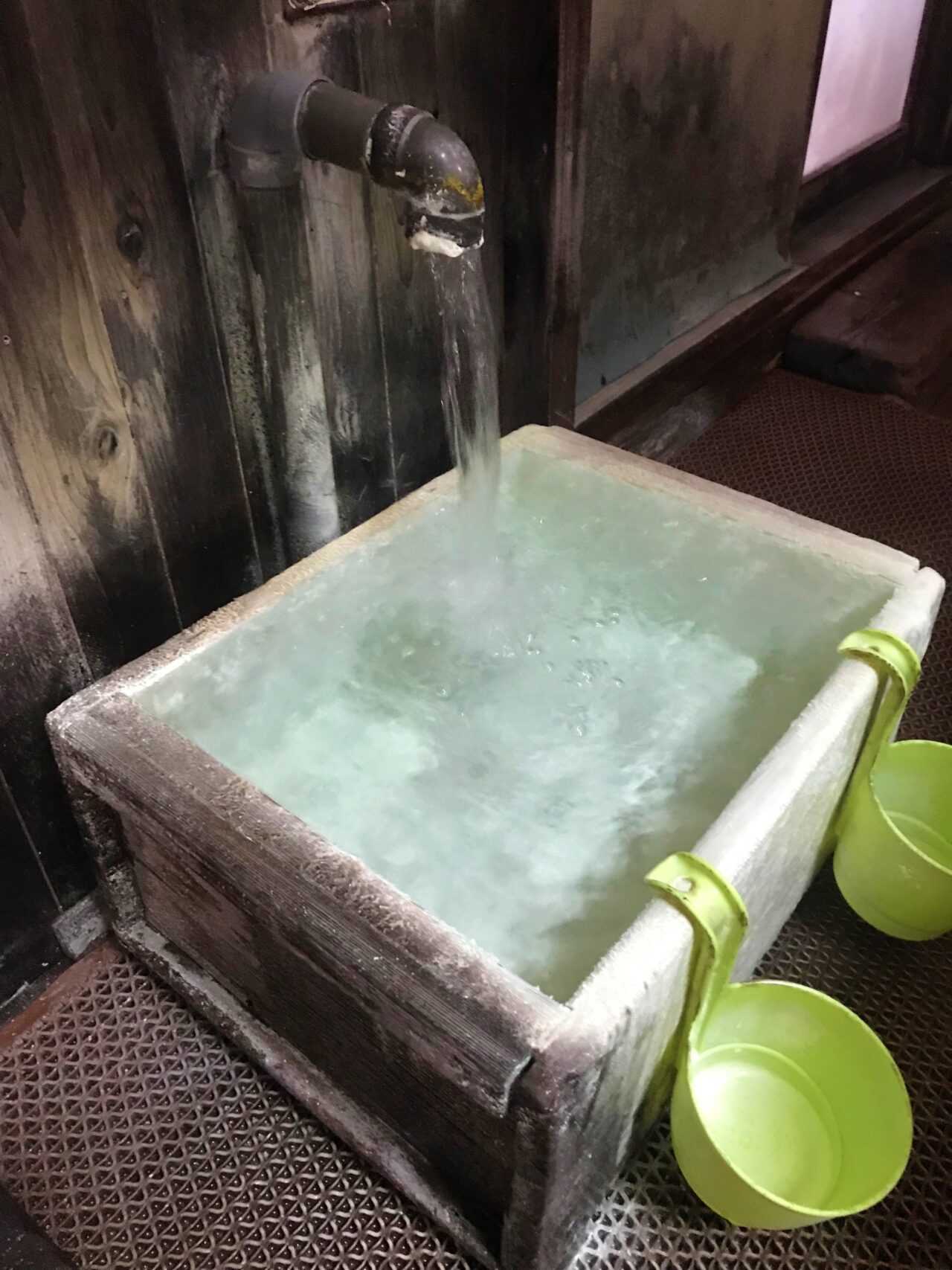 ちなみにポコポコ自噴なんですが、真ん中あたりに温泉をすくうやつが見えますかね。