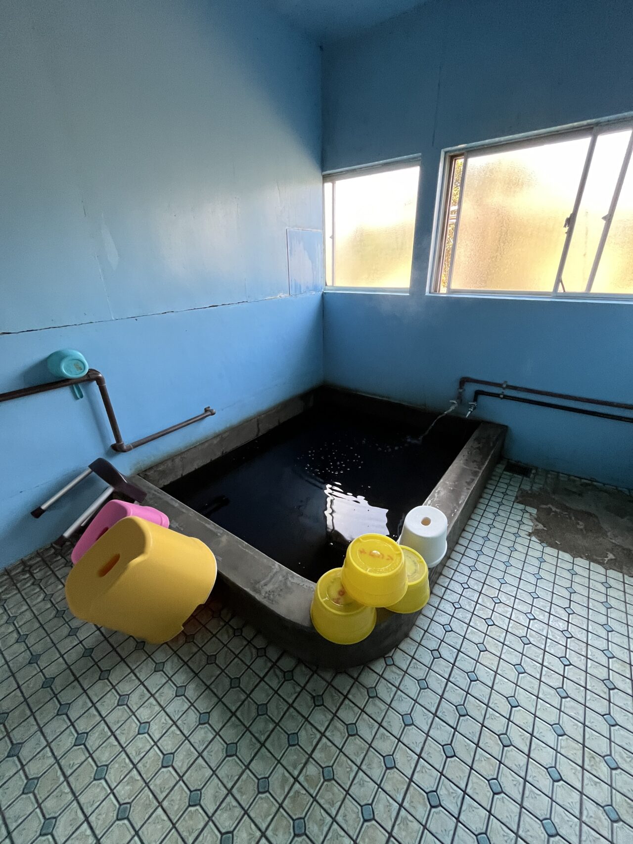 そして源泉と水をドバドバ足せるので、常に浴槽からお湯がオーバーフロー。